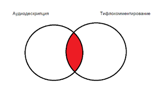 Поэтому эти понятия пересекаются лишь в той части, когда речь идёт об аудиозаписи комментария для людей с нарушениями зрения.