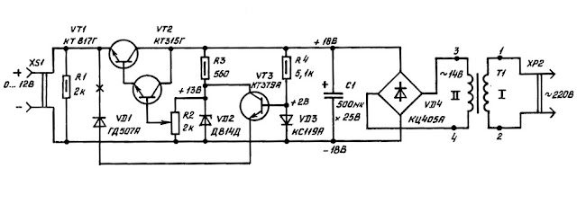 Как только причина КЗ устранена, происходит автоматическое восстановление работы блока питания, что упрощает обращение с ним. Стабистор КС119А (VD3) можно заменить тремя последовательно соединенными непременно кремниевыми диодами (например, серий КД102, КД103, КД105, КД106, КД209 и др.). Сопротивление резистора R4 зависит от напряжения выпрямления. Если вместо 18 В оно равно 14 В (при использовании трансформатора ТВК-70Л2) или 30 В (с трансформатором ТВК-110Л-1), номинал R4 нужно уменьшить до 3,9 кОм или увеличить до 8,2 кОм соответственно.
