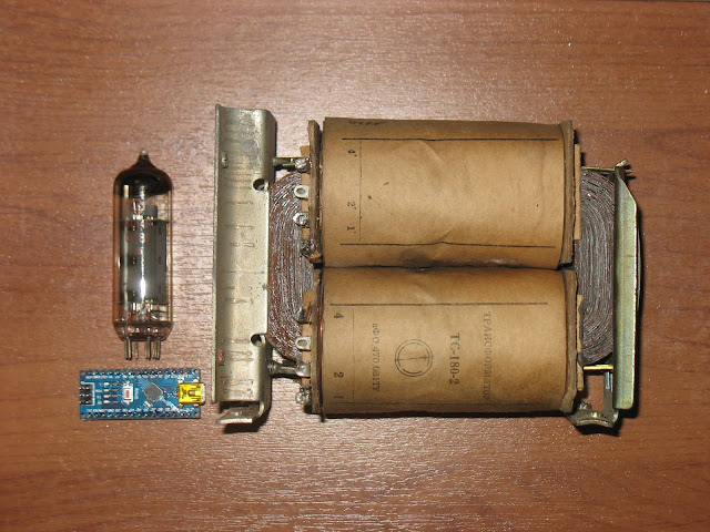 ТС-180-2 в сравнении с лампой 6П14П и платой Arduino Nano |
