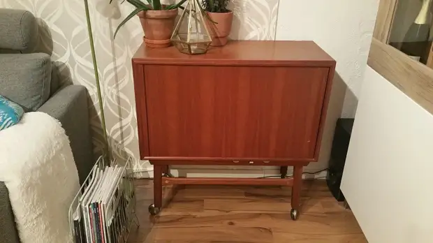 - прикрутить дверцу или откидную крышку, поставить полочки, чтобы сделать бар более «продвинутым»;