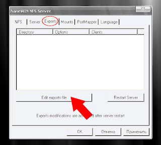 Примечание: иногда брандмауэр Windows или встроенный в антивирус файрвол могут блокировать работу NFS-сервера. Что бы этого не происходило, в брандмауэре Windows (или если у вас стоит другой файрвол, то в нем) необходимо разрешить доступ в сеть двум приложениям: nfsd.exe и pmapd.exe (они находятся в папке установки сервера C:Program Filesnfsd).