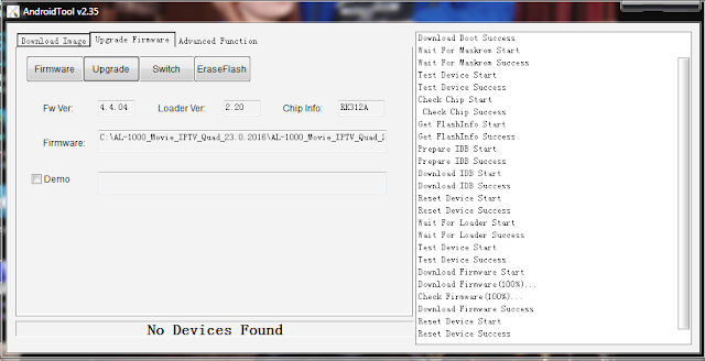 Если все нормально, нажимаем кнопку «EarseFlash». Ни в коем случае не отключайте приставку во время прошивки! И очень желательно, чтобы ПК был подключен к бесперебойному питанию. Если загрузчик испортится, то своими силами восстановить приставку будет уже невозможно! После того, как отчистка флеш-памяти закончится и вылезет окно уведомления, нажимаем кнопку «Upgrade».