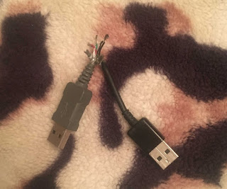 Также для прошивки понадобится скрепка и USB-кабель типа A(m)-A(m). Так как у меня такого не оказалось, пришлось собирать на скорую руку. (Зубочисткой не лезть!)