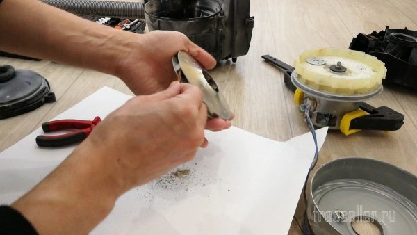 - полученным раствором протереть предварительно разобранный пылесос изнутри, при этом особое внимание следует уделить труднодоступным участкам и месту крепления пылесборника;