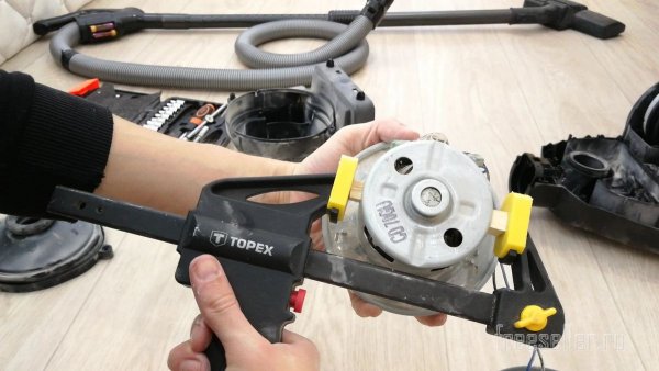 Электродвигатель пылесоса также часто подвергается загрязнению и нуждается в регулярной очистке. Для этого с агрегата снимают все фильтры, выносят его на балкон и включают, установив переключатель мощности на максимальное значение. При этом агрегат рекомендуется наклонять в разные стороны и осторожно потряхивать.Спустя несколько минут прибор выключают, дают мотору остыть и протирают сверху влажной салфеткой.
