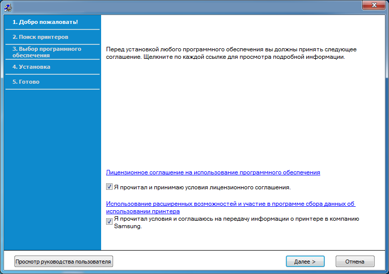 Некоторые модели принтеров могут во время установки потребовать отсоединить МФУ Samsung scx от компьютера для корректной настройки программного обеспечения. Далее можно смело следовать подсказкам и, уже через несколько минут, нужный драйвер будет установлен.