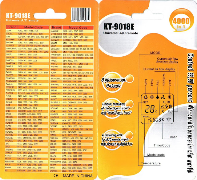 Я приобрёл модель KТ-9018E, какого-то китайского производителя. Как обещают его создатели, он подходит к 4000 моделей кондиционеров.