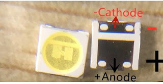 Сам потратил не мало времени на поиски этих светодиодов. Но когда присмотрелся на сгоревшие светодиоды, то в них можно обнаружить 2 полоски в компаунде. Это то что нужно.