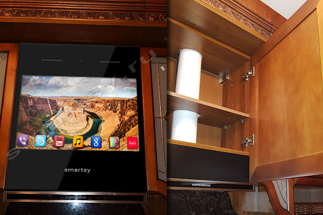 | Встраиваемый телевизор для кухни — фасад ТВ для широких фасадов. |