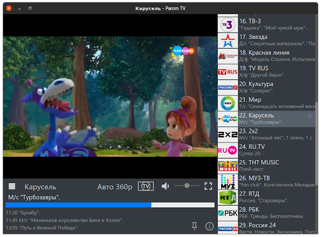 Установить видеоплеер Parom TV в Ubuntu 20.04 и производные