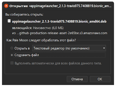 1. Прежде всего необходимо установить AppImageLauncher, с оф. сайта https://github.com/TheAssassin/AppImageLauncher/releases, выбрав один из .deb-пакетов