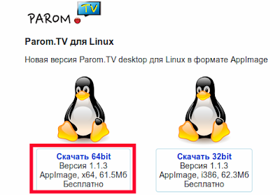 2. Теперь непосредственная установка Parom TV Player для Linux также с оф.сайта программы, по следующей ссылке: http://www.parom.tv/ru/linux