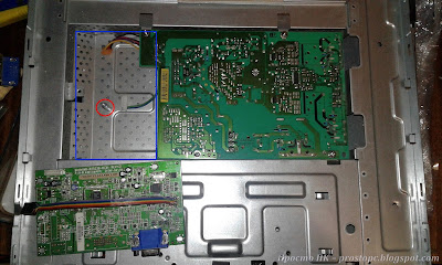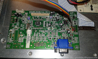 Припаяв все провода, начинаем собирать готовое изделие. Для крепежа верхнего правого угла платы, прячущегося под краем платы БП, отлично подошла пластиковая стойка для крепежа материнских плат, которая отлично ввернулась в одно из отверстий металлического корпуса монитора.
