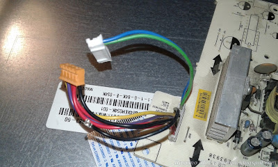 Первым делом выпаиваем разъём подключения платы управления (JP1) и впаиваем вместо него кусок шлейфа. Рекомендую сразу взять немного подлиннее (15-20 см), чтобы потом не пришлось повторно перепаивать (как некоторым). Распиновка следующая:
