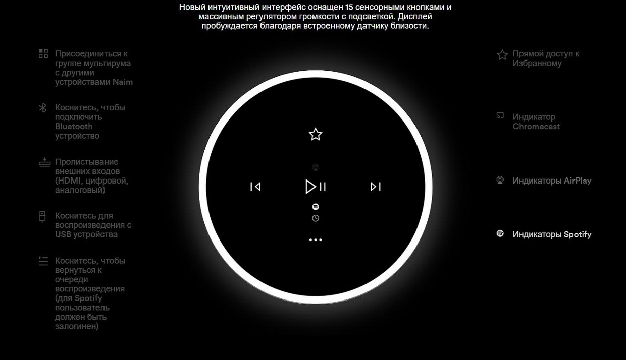 Первое поколение Naim Mu-so запомнилось своим элегантным управлением – во второй реинкарнации её сенсорная панель управления может похвастаться более четкой системой распознавания касаний и датчиком приближения – интерфейс теперь активируется автоматически после того, как вы подносите руку к верхней панели. Выглядит и ощущается магически.