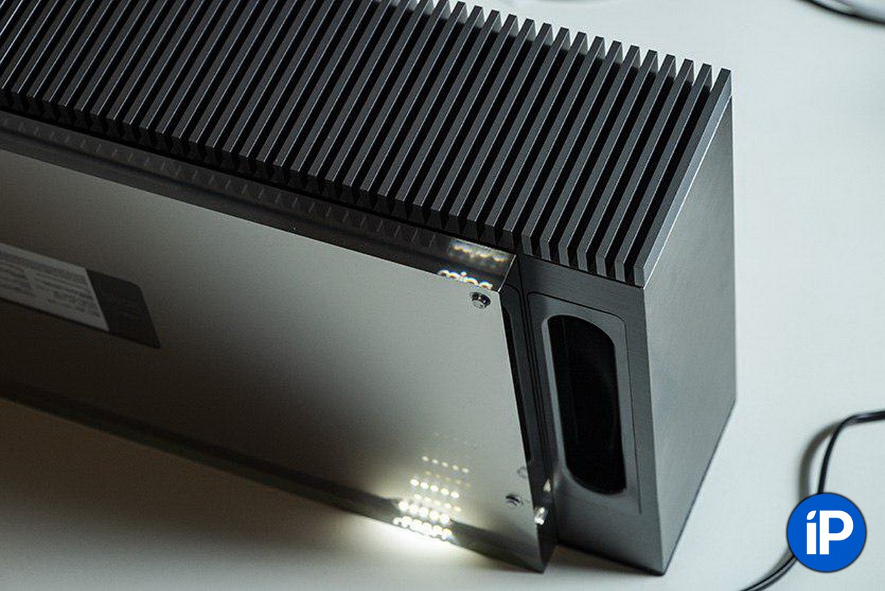Корпус саундбара выполнен из одного куска алюминия, поэтому обладает невероятной прочностью. Покрытия нет, только шлифованный металл. Он не боится царапин, легко очищается. Такой он, хайтек, который мы не заслужили.