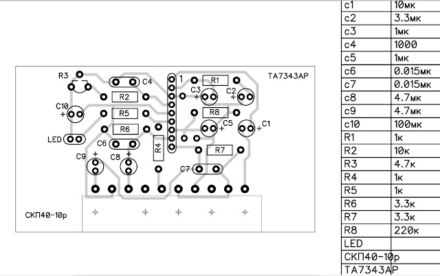 [ Поправка от 18.08.18]→ Данную информацию предоставил Александр Самойлов. (Приношу свои извинения, Александр, за очень долгую публикацию) Александром была переведена схема стереодекодера на TA7343AP в формат программы Layout 6.0. «П рилагаю плату декодера в формате lay6. На плате приведены обозначения компонентов. Печатать производить зеркально. П одстроечник нужен строго по номиналу, в противном случае работа декодера не корректна»