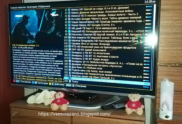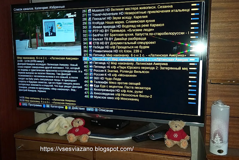И вот результат. Качество супер, быстрота сёрфинга по каналам — лучшая. Избранные каналы — под Ваши интересы.