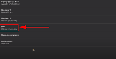 6. Перейдите к настройке EPG как указано на картинке. Это файл, который отвечает за телепрограмму и архив на ваших каналах тут вы должны вписать http://epg.it999.ru/epg.xml.gz