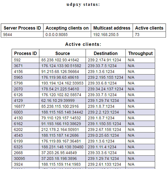 По адресу отображается состояние клиентов, с какого источника IP адреса пользователь смотрит канал и сам адрес канала IPTV.