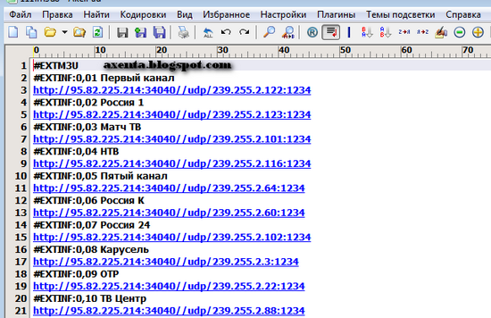 Вот так плейлист выглядит в текстовом редакторе AkelPad: