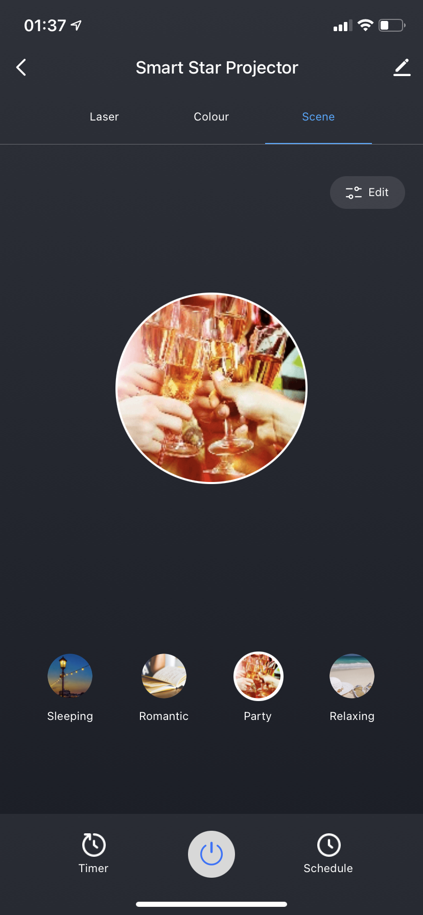 Во вкладке Scene нажав на копку Edit можно добавить набор из разных цветов и настроить анимацию для них. Для каждого цвета можно так же внести настройки по яркости и контрастности прямо внутри сцены. Так же изменить скорость переключения и выбрать один из трех видов анимации для смены цвета. Таким образом можно настроить до четырех разных сцен под определенную атмосферу.