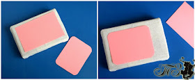 В качестве наполнителя для экрана я использовала тонкий синтепон. Из синтепона вырежем 2 детали. Одну – под размер нашего экрана, другую размером поменьше, более квадратной формы.