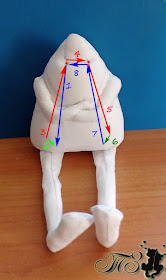 Рисунок дан только для примера! Когда набьете тело – линии утяжки лучше нарисуйте сами. А то при набивке тело может сильно растянуться и скопированные с выкройки руки окажутся или искаженными, или не месте!