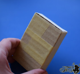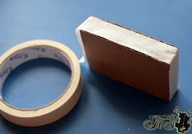 А затем оклеим скотчем и все остальные картонные поверхности заготовки. Малярный скотч защитит поверхность заготовки на этапе тонировки (грунтовки) ткани кофейным раствором с ПВА, чтобы картон не повело от влаги!