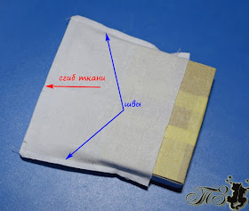 Со стороны сгиба ткани отвернем уголки и зафиксируем их в таком положении парой стежков.