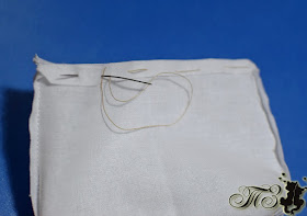 Вывернем заготовку на лицо, вручную потайным швом зашьем уголки, после этого с изнанки обрежем лишнюю ткань и удалим наметку.