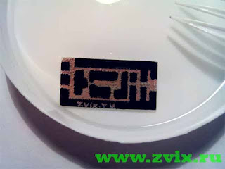 Печатную плату сделал я старым дедовским способом, нарисовал ее маркером и отправил травиться в раствор лимонной кислоты с перекисью водорода и солью.