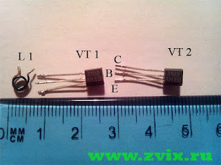 L1, L2 = 3 витка диаметром 3 мм, 0,5 мм проволока.