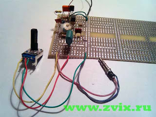 Для проверки схемы на работоспособность я решил собрать ее на макетной плате. Особых трудностей при сборке не возникло. После сборке я решил испытать своё устройство, подключив его к компьютеру. Частоту на радио приёмнике я нашёл быстро покрутив подстроечный конденсатор C2.